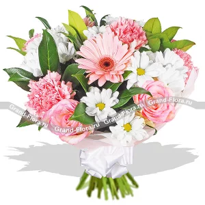 С любовью и нежностью - букет из кустовых хризантем, роз и альстромерий